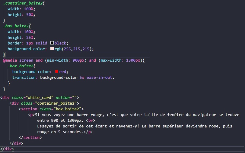 Si vous voyez une barre rouge, c'est que votre taille de fenêtre du navigateur se trouve entre 900 et 1300px. Essayez de sortir de cet écart et revenez-y! La barre supérieur deviendra rose, puis rouge en 5 secondes.